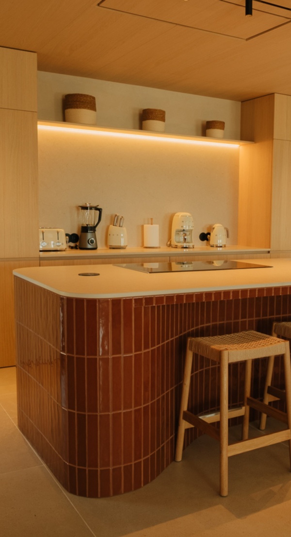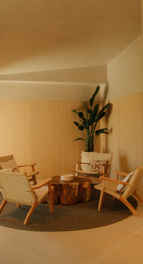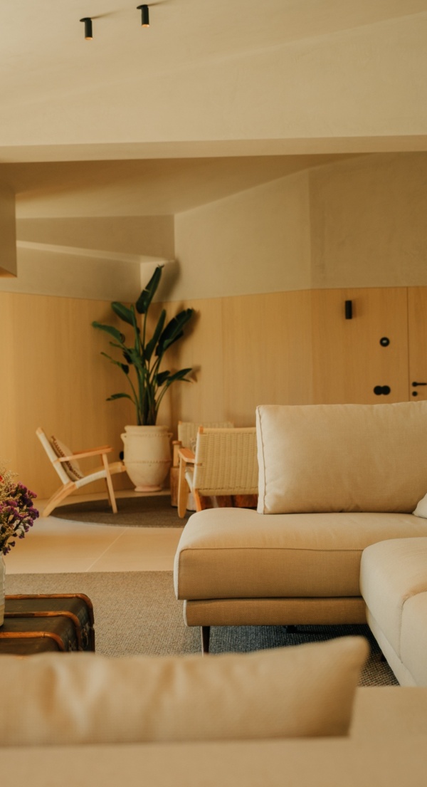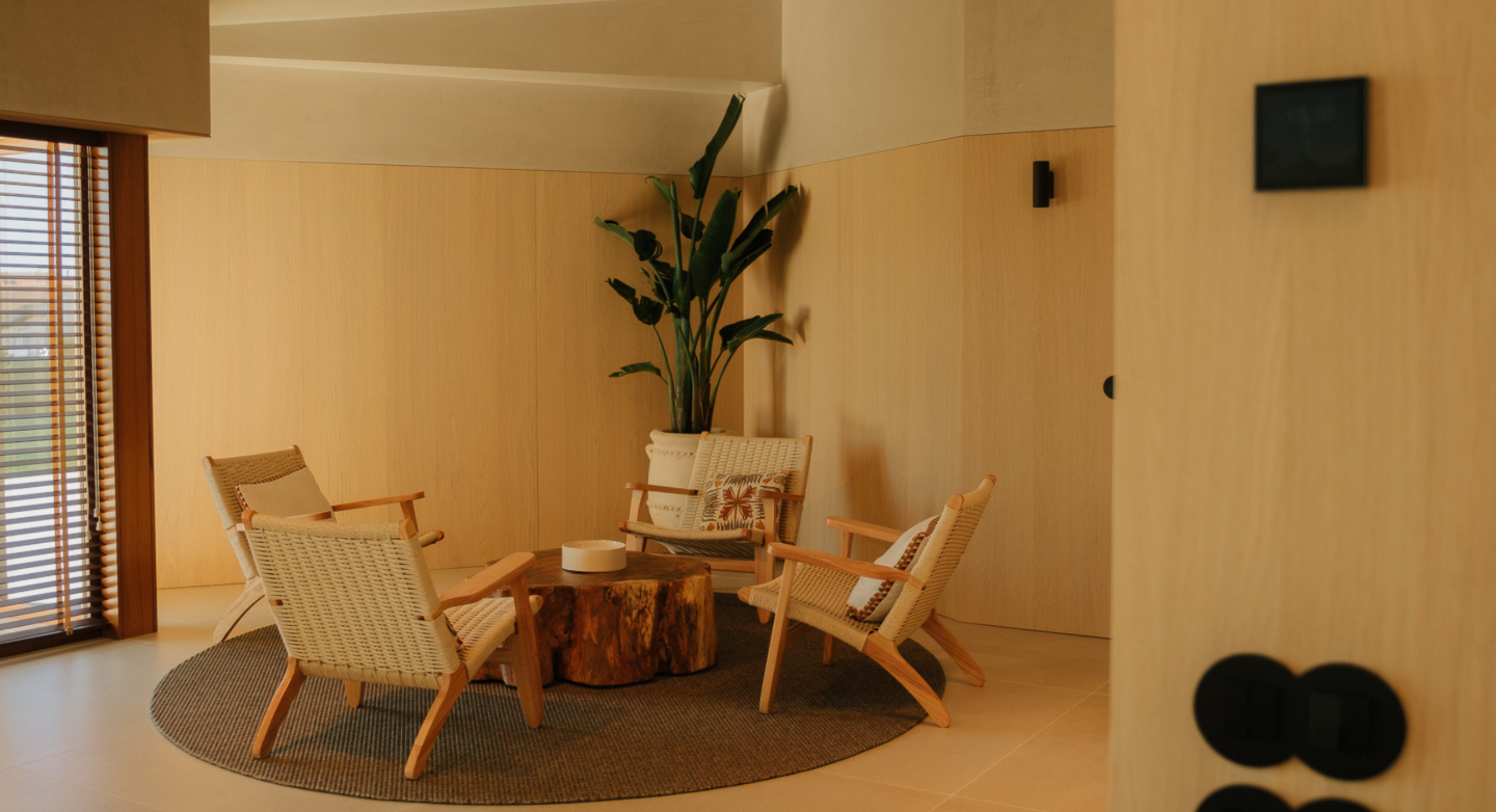 Na Casa Ori, cada espaço reflete a essência da calma e do acolhimento. A arquitetura, simples e envolvente, abre-se à natureza e à luz natural, criando um ambiente de pura harmonia. Os interiores equilibram elegância e conforto, com texturas suaves e tons neutros que convidam ao repouso e à introspeção. No exterior, o mar e a vastidão do horizonte completam a experiência — um cenário perfeito para práticas de yoga, momentos de reflexão, caminhadas junto à costa ou um mergulho revitalizante de alma.