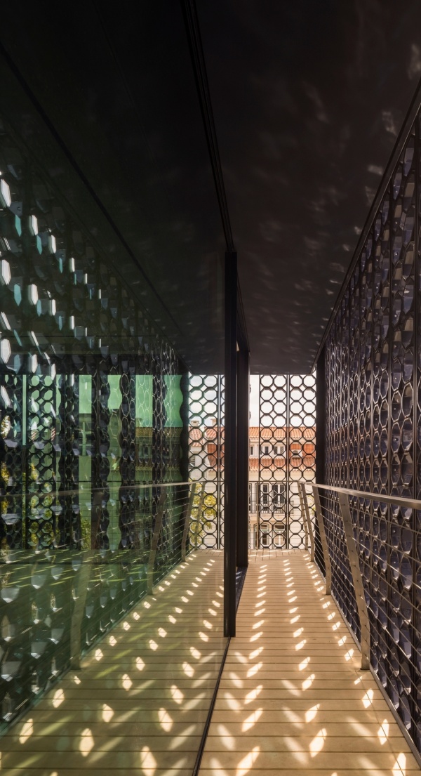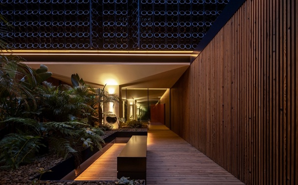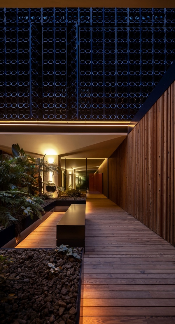 O Edifício Náutico desenha um pátio interior entre as lojas, que permite criar o acesso às frações de habitação. Neste espaço, foram cuidadosamente desenhados canteiros que ponteiam as entradas para as habitações, proporcionando um efeito introspetivo e convidativo aos moradores. Esta disposição contribui para uma sensação de tranquilidade e conexão com a natureza dentro do ambiente urbano.O perímetro